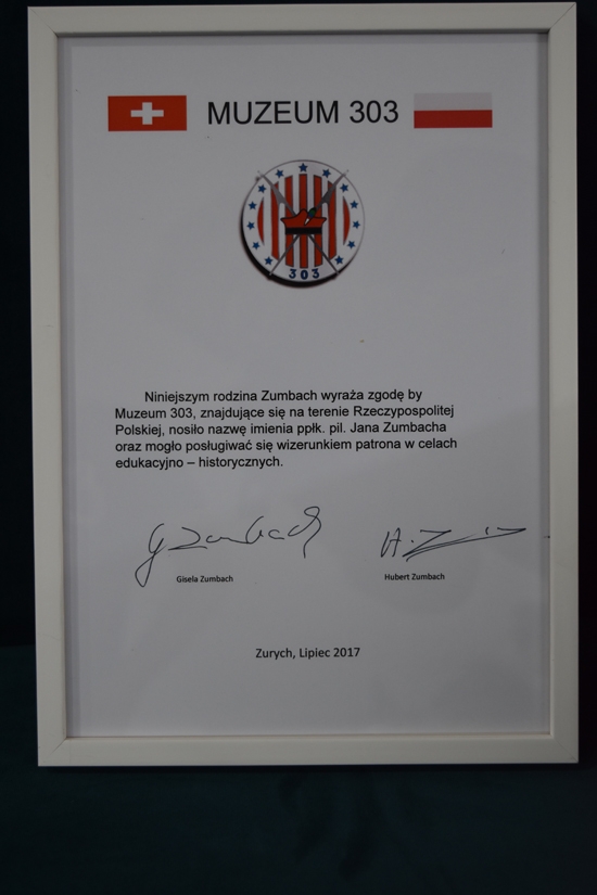 Najważniejszy wyjazd przedstawicieli Muzeum 303 .Spotkanie z najbliższymi członkami rodziny Jana Zumbacha z żoną panią Giselą Zumbach i synem Hubertem.Niezapomniane chwile w których rodzina naszego patrona wyraziła radość i wdzięczność w związku z organizacją Muzeum303 w Polsce.Na okoliczność tego wydarzenia zostało formalnie podpisane pismo .